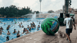 三、水世界吃瓜大赛的现场